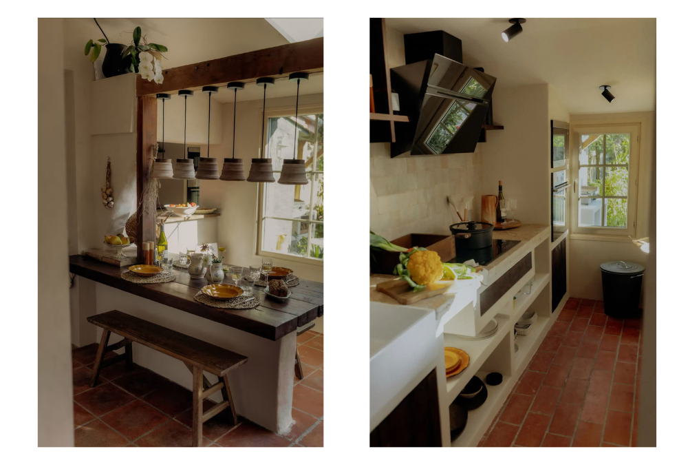 • Cuisine ouverte : entièrement équipée, elle s’ouvre sur le jardin pour des repas conviviaux avec vue sur le clocher de l’église.